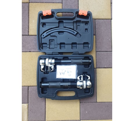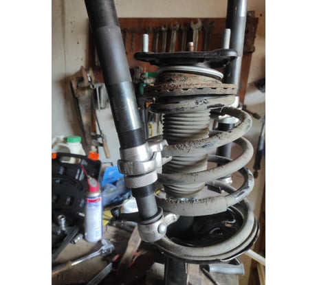 Так легко и просто ни одним съемником пружины не менял, очень понравилось. И набор-то компактный, на выезд брать удобно. Страховочная дуга в целом там не нужна, на самом деле: с одной стороны обеих стоек есть фиксатор на витке пружины, чего очень даже достаточно, чтобы ничего никуда не сползало и не слетало. Вообще, в работе создалось впечатление о добротности и надежности инструмента. Очень рекомендую после покупки все раскрутить и смазать литоло- или солидолоподобными смазками, тогда стойки легковушек крутятся вообще без усилий. И не применяйте ударный инструмент - проживет дольше резьбовая шпилька.