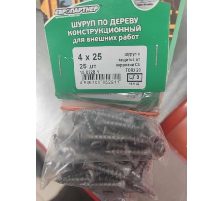 Отзывы об усиленном саморезе ЕВРОПАРТНЕР с антикоррозионным покрытием 4.0х30 TX-20, 25 шт 15 0533 1