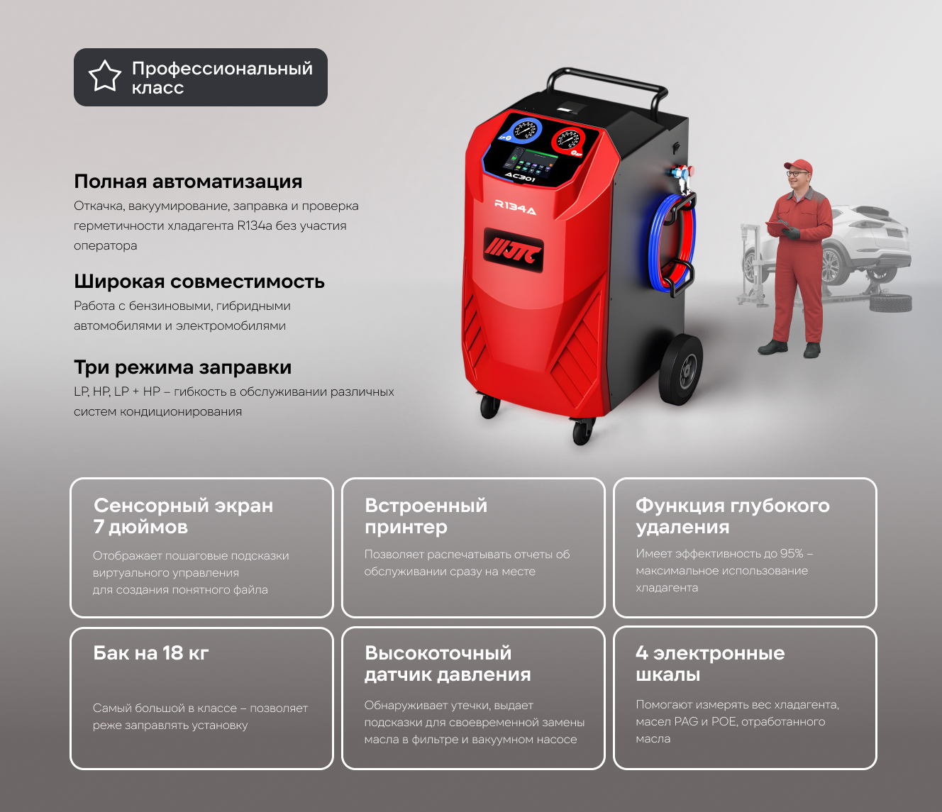 Технические характеристики установки для заправки автомобильных кондиционеров JTC JTC-AC301