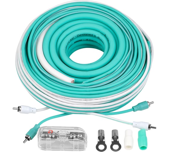 Набор кабелей и аксессуаров для установки автомобильных усилителей.
