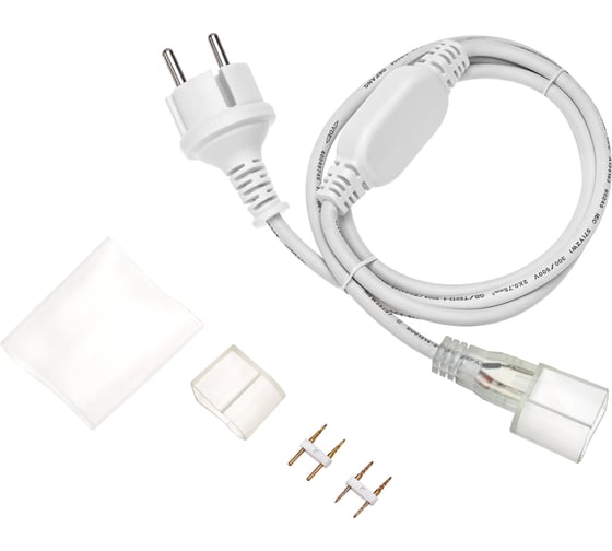 Установочный комплект подходит для подключения одностороннего гибкого неона SMD 15х26 мм, 220 В, 1,5 м Neon-Night. При подключении гибкого неона к соединительному разъему (муфте) необходимо заизолировать свободное воздушное пространство соединительного разъема (муфты) морозостойким силиконовым герметиком, предотвращающим попадание влаги. Сверху данного соединения необходимо использовать термоусаживаемую трубку.