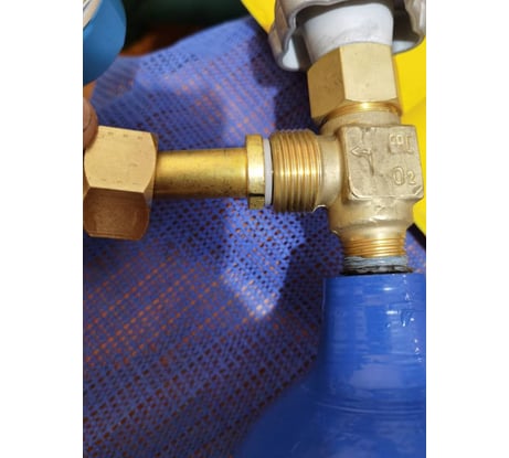 При соединении большого 40 литрового баллона с углекислотой с маленьким 5 литровым огнетушителем ОУ-5 приходится долго выравнивать баллоны из-за маленькой длины устройства.