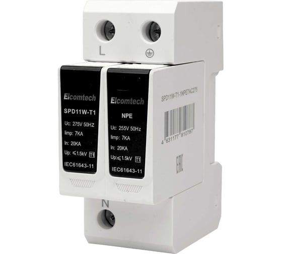 Устройство защиты импульсных перенапряжений ELCOMTECH T1 1+NPE 50kA 275V SPD11W-T1-1NPE7AC275 УТ-00039208