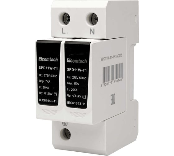 Устройство защиты импульсных перенапряжений ELCOMTECH T1 2P 50kA 275V SPD11W-T1-1N7AC275 УТ-00039204