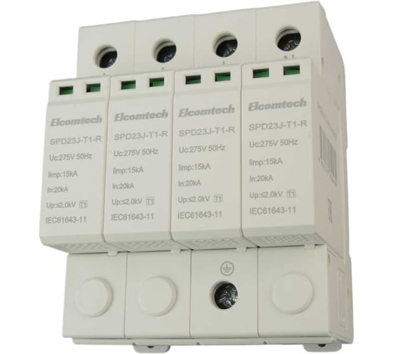 Устройство защиты импульсных перенапряжений ELCOMTECH T1 4P 50kA 275V SPD23J-T1-3N15AC275R УТ-00039073