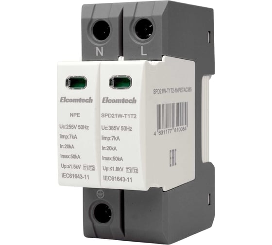 Устройство защиты импульсных перенапряжений ELCOMTECH T1T2 1+NPE 50kA 385V SPD21W-T1T2-1NPE7AC385 УТ-00039138