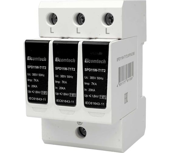 Устройство защиты импульсных перенапряжений ELCOMTECH T1T2 3P 50kA 385V SPD11W-T1T2-3P7AC385 УТ-00039238