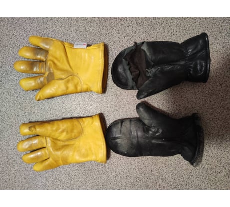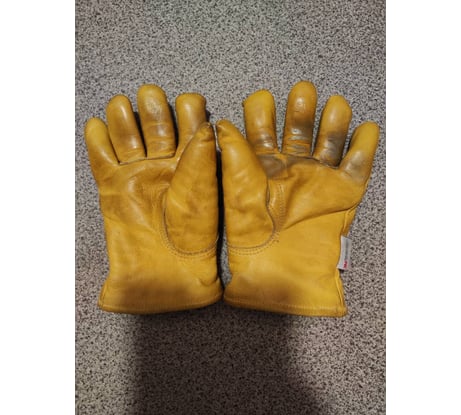 Кожа маркая, впитывает грязь. С новья на ней куча мелких коцак, то ли хранили небрежно. То ли прочность оставляет желать лучшего. Утепление слабое, конечно если активно двигаться руки не мёрзнут, но если держать что-то холодное. Например черенок лопаты или лом, то холод проникает и руки начинают дубеть. В качестве рабочих применимы только для удержания габаритных предметов где не требуется тактильная чувствительность. Лопата, топор, лом, отбойный молоток или разгружать доски. О работе даже ушм под 230й круг можно забыть. Кнопку с флажковой или иной защитой включить практически нереально. Молотком тоже особо не поорудуешь, пальцы в этих перчатках толком не гнутся. Про шуруповерт, перфоратор и всё подобное, не стоит и думать.