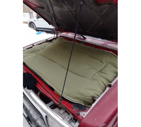 Замерил под капотом, подходило вроде одеяло 142×88. Заказал, через неделю заказ почему-то отменили. Перезаказал на больший размер 160×90 (думал края подогну). Одеяло пришло быстро и под капот легло идеально. По ширине подошло отлично, а по длине края подсунул под крылья. Есть одно но, одеяло по размерам оказалось ~152×82, если конечно с большим усилием натянуть может и получится 160×90. В общем одеяло изготовлено качественно, хорошо прошито, и надо брать по размерам чуть больше, т.к. края всегда можно подогнуть. Авто 4Раннер.