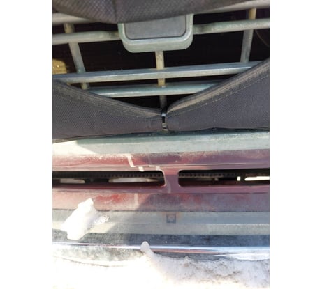 Сам утеплитель достаточно плотный, не тряпочка. Но резинки крепления "жидковаты". По середине в нижней части зацепил хомутом, чтобы не бояться, что потеряю. Пришлось подумать как прицепить его, чтобы не болтался. Мой вариант на фото.