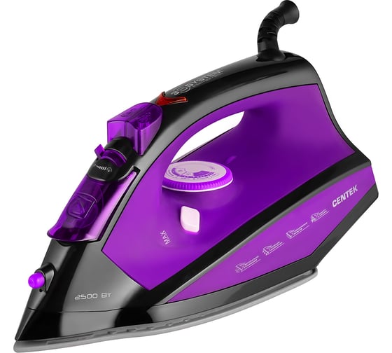 Утюг Centek 2500 Вт, керамическ подошва, 270 мл, паровой удар, самоочистка, капля-стоп CT-2355 VIOLET предназначен для глажения белья, домашнего текстиля, одежды.