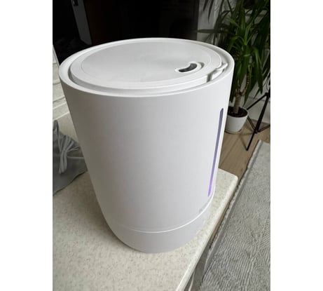 Товаром доволен. Симпатичный дизайн без излишеств.Хорошо упаковано,простая и доступная инструкция,в коробке много всяких доп маркетинговых материалов,в том числе магнитик серии "кит".Парит хорошо,в комнате быстро меняет климат. Подсветка приятная,в темноте не раздражает. Да -не беззвучный, как "плюшевые" копеечные,но и ночью не мешал спать. Чуть слышно.