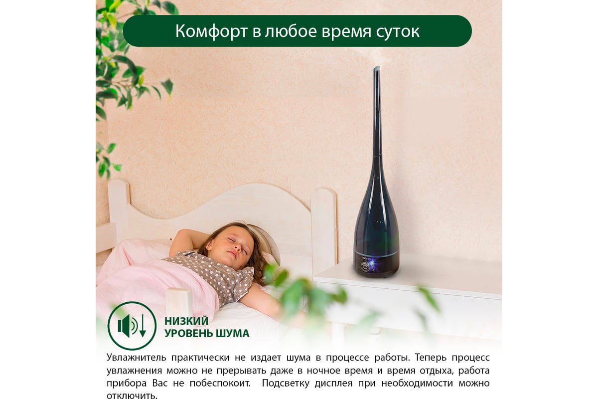 Увлажнитель воздуха MT-2375 бесшумно нормализует уровень влажности в помещении до идеального уровня.