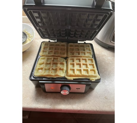 Наконец-то решилась купить вафельницу себе, долго выбирала. В итоге выбор пал на данную модель. Цена и в принципе качество устроила. Быстро печёт, не пригорает, не совсем разобралась с их индикаторами. Но это никак не повлияло на процесс выпекания вкусностей.