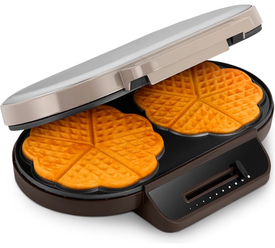 С помощью электрической вафельницы КТ-3637 вы сможете печь вафли в форме цветка, которые при желании можно разделить на маленькие сердечки. Вафельница рассчитана на приготовление 2 вафель в форме цветка или 10 маленьких вафель в форме сердечек.