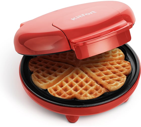 С помощью электрической вафельницы КТ-5613 вы можете печь вафли в форме цветка, которые при желании можно разделить на пять маленьких вафель в форме сердечка. Вафельница рассчитана на приготовление одной вафли в форме цветка.