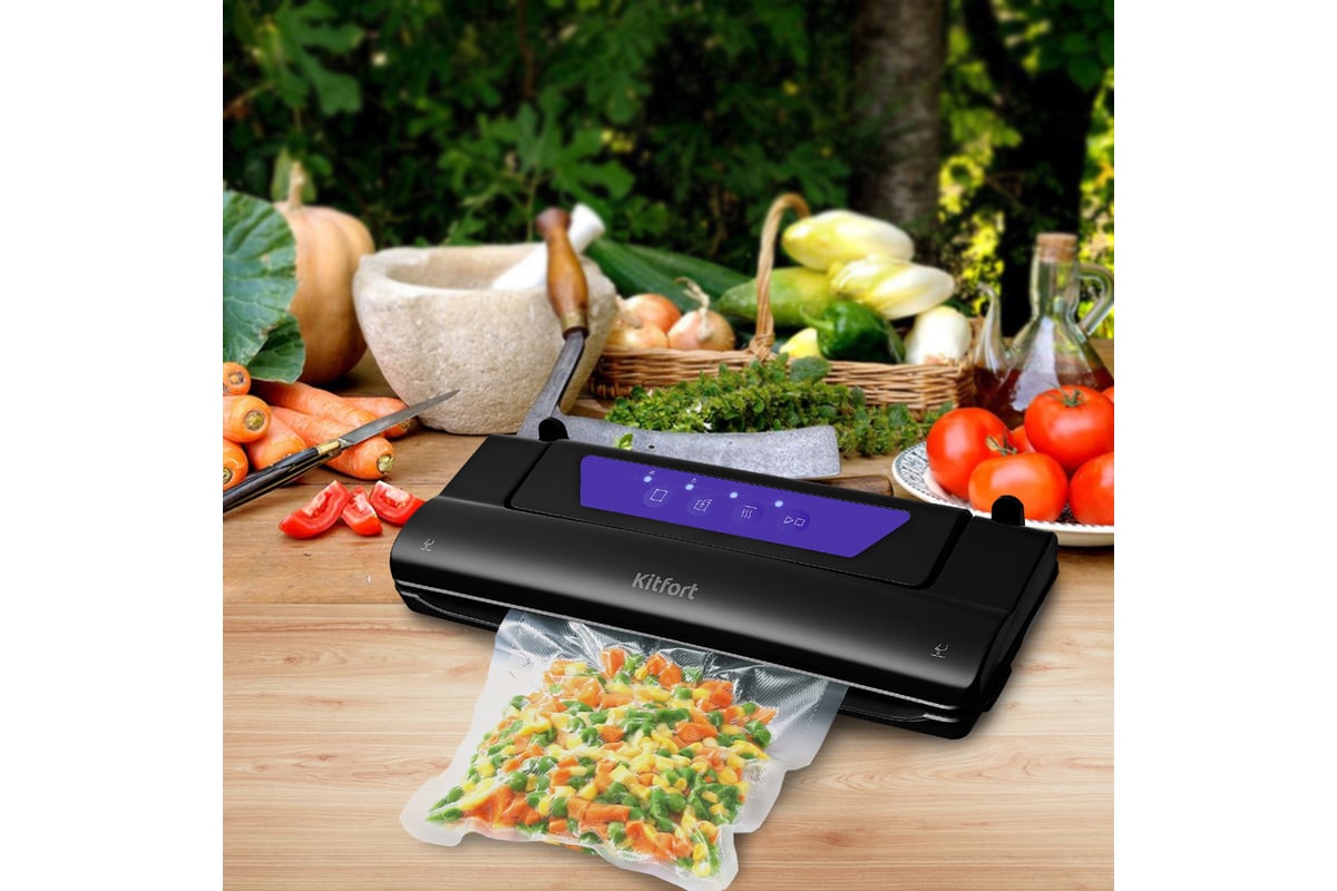 Вакууматор — устройство для вакуумной упаковки продуктов. Вакуумирование позволяет защитить от пыли, грязи, сохранить аромат и продлить сроки годности пищевых продуктов. Такой метод хранения уменьшает риск развития бактерий, которые появляются благодаря взаимодействию пищи с воздухом. Удаление воздуха из пакета гарантирует замедление процессов брожения, окисления и испарения, позволяя сохранить приятный внешний вид и качество самых разных продуктов питания.