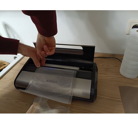 Работой Вакууматора KITFORT очень довольна. Оказывается, он может быть очень полезен и может не только запечатывать пакеты под вакуумом, но и без вакуумирования, а еще имеет функцию " Упаковка в вакуумные контейнеры", для этого нужно докупить шланг и контейнеры ( они в комплект не входят). Данной функцией не пользовалась, пока нет необходимости. Раньше даже не задумывалась, что очень удобно хранить овощи (и вообще продукты как готовые так и полуфабрикаты) в холодильнике, запечатанные под вакуумом.
