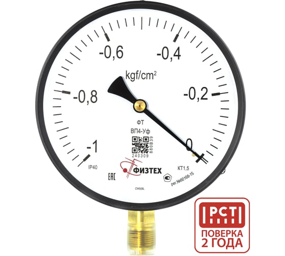 Вакуумметр технический ПО Физтех, АО ВП4-Уф -1…0 кгс/см2 кт.1,5 d.160 IP40 M20_1,5 РШ 4687205844026