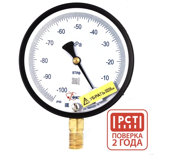 Вакуумметр ПО Физтех, АО ВТИф -100…0 кПа кт.0,4 d.160 IP40 M20_1,5 РШ Корр.0 4687205621535