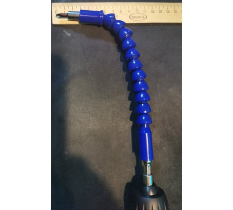 Обычный гибкий вал. Можно без проблем просверлить отверстие (нужно сверло-бита с шестигранным основанием) в недоступном для дрели или шуруповёрта месте. Но для закручивания средних и, тем более, крупных саморезов или шурупов не годится - скручивается в петлю. Впрочем, для этого и не предназначен (написано "для дрели").