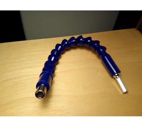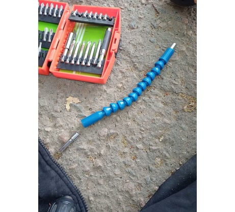 Обычный гибкий вал. Можно без проблем просверлить отверстие (нужно сверло-бита с шестигранным основанием) в недоступном для дрели или шуруповёрта месте. Но для закручивания средних и, тем более, крупных саморезов или шурупов не годится - скручивается в петлю. Впрочем, для этого и не предназначен (написано "для дрели").