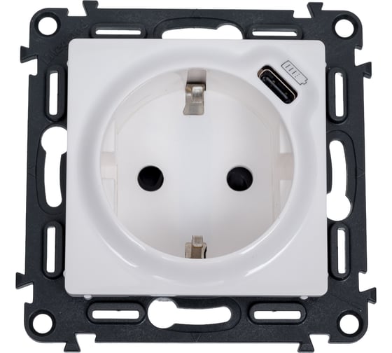 Розетка комбинированная Legrand Valena LIFE 2К+З 16А ~250В со встроенным зарядным устройством USB C 1,5А 5В С лицевой панелью Белое 753135