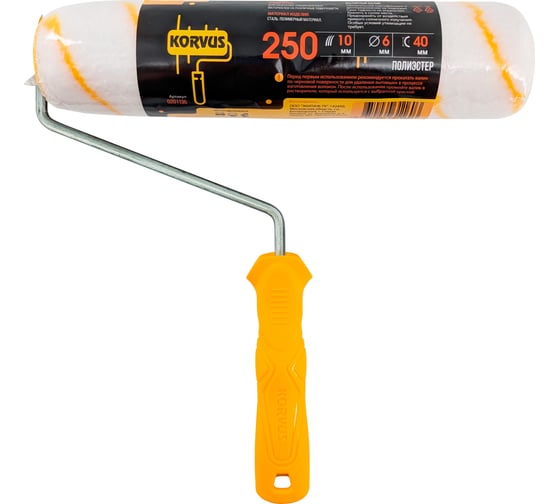 Валик с ручкой Korvus полиэстер, 10/250/40мм, желт.нить, D6мм ЛА-00003641