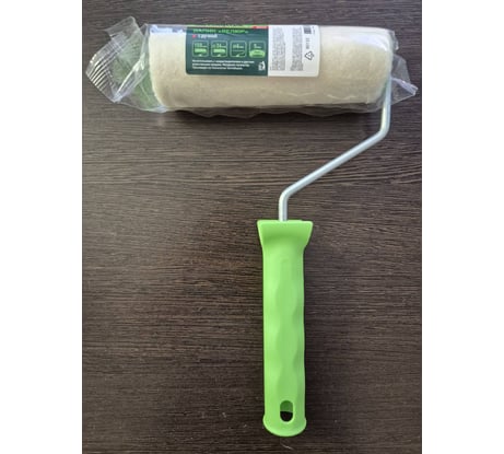 Хороший диаметр, материал валика-велюр. Брал для нанесения масла на листы фанеры.