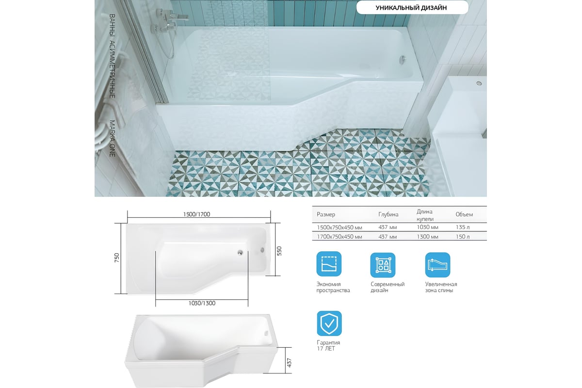 Модель легко расположить между стенами в нише. Асимметричная форма позволяет совместить слив раковины и ванны, освобождает больше места для других атрибутов. Увеличенная зона спины дает возможность принимать ванну и душ без стеснений и дискомфорта. Модель левосторонняя.