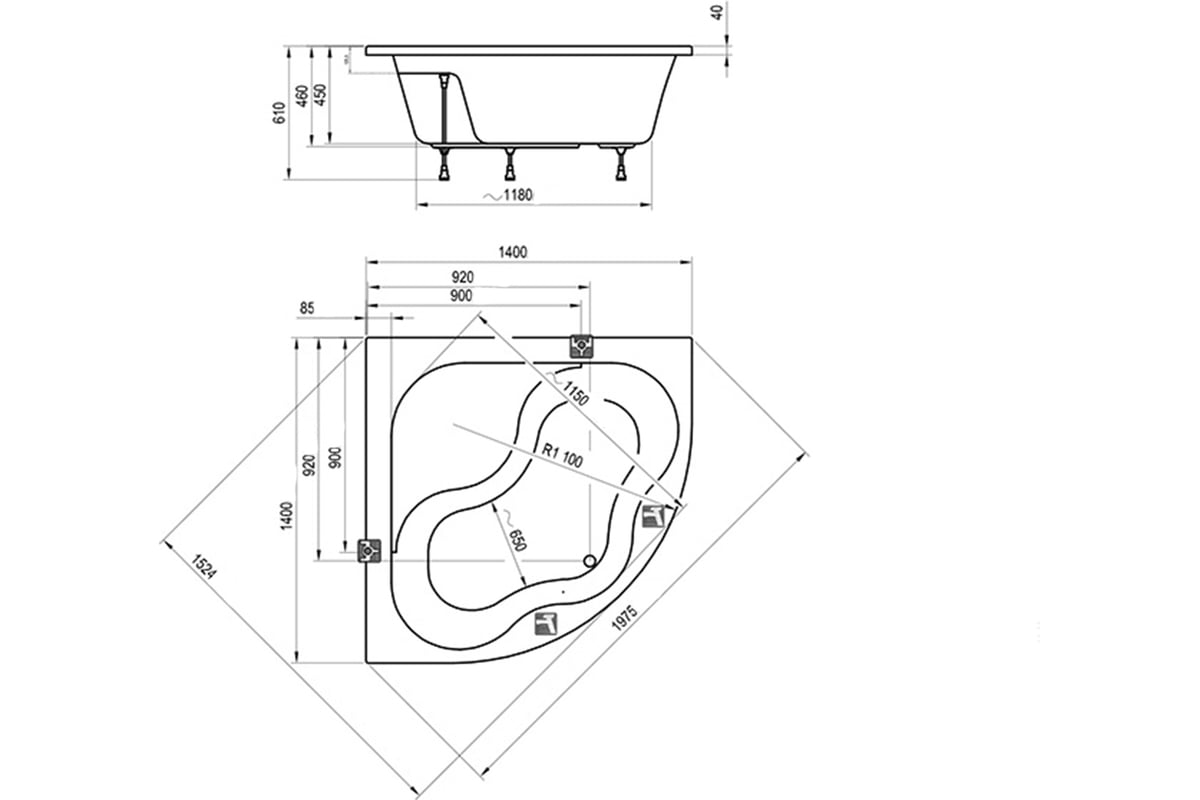 - Допустимые отклонения по длине и ширине ванны составляют ± 5 мм.