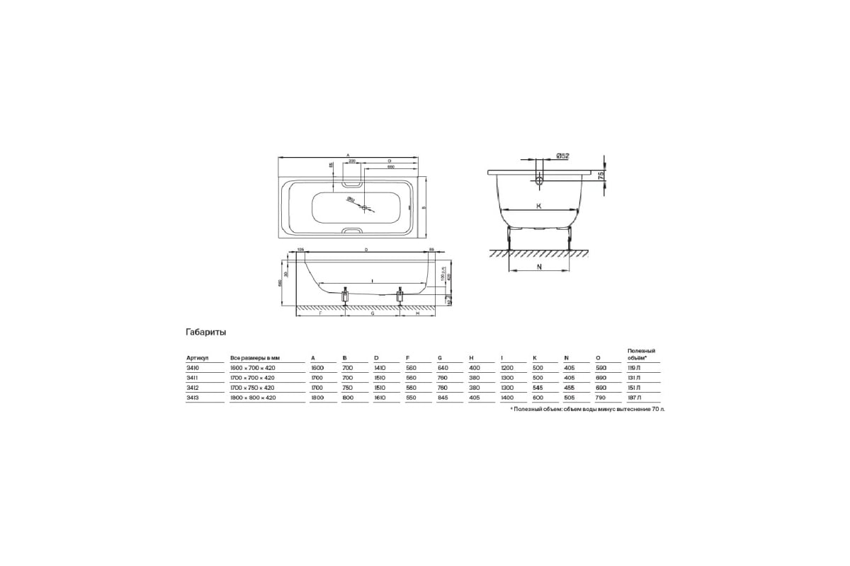 Внимание! Комплект ножек и слив-перелив приобретается отдельно.
