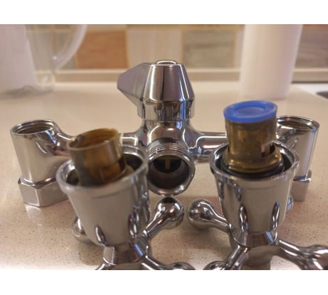 Одна кран-букса даже не до укомплектована. На фотографии, по сравнению, с нормальной кран-буксой, видно что одна явно не доделана. В результате чего после установки совсем не текла горячая вода. Поставили "старую" - все нормально.