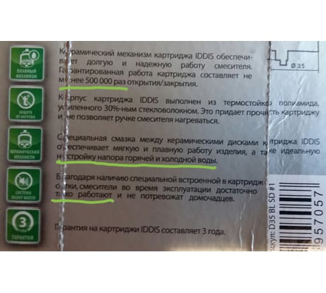 Нержавеющая сталь При замене картриджа на пример на Италльянский IDDIS D35 BL SD#1 Рычаг переключения будет смотреть в другую сторону !