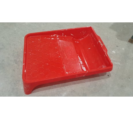 Искал именно скруглённую ванночку, так как у обычных кювет там угол, в котором остаётся много краски и её оттуда валиком не забрать. Здесь же можно прям всю краску забирать.