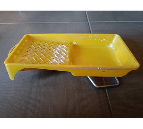 Небольшой размер, легко моется. Пластик достаточно твёрдый, краску много лить не нужно. Покупал для небольших валиков. Устойчивая. Красил двери, окна, акриловой краской. Ополоснул - как новая.