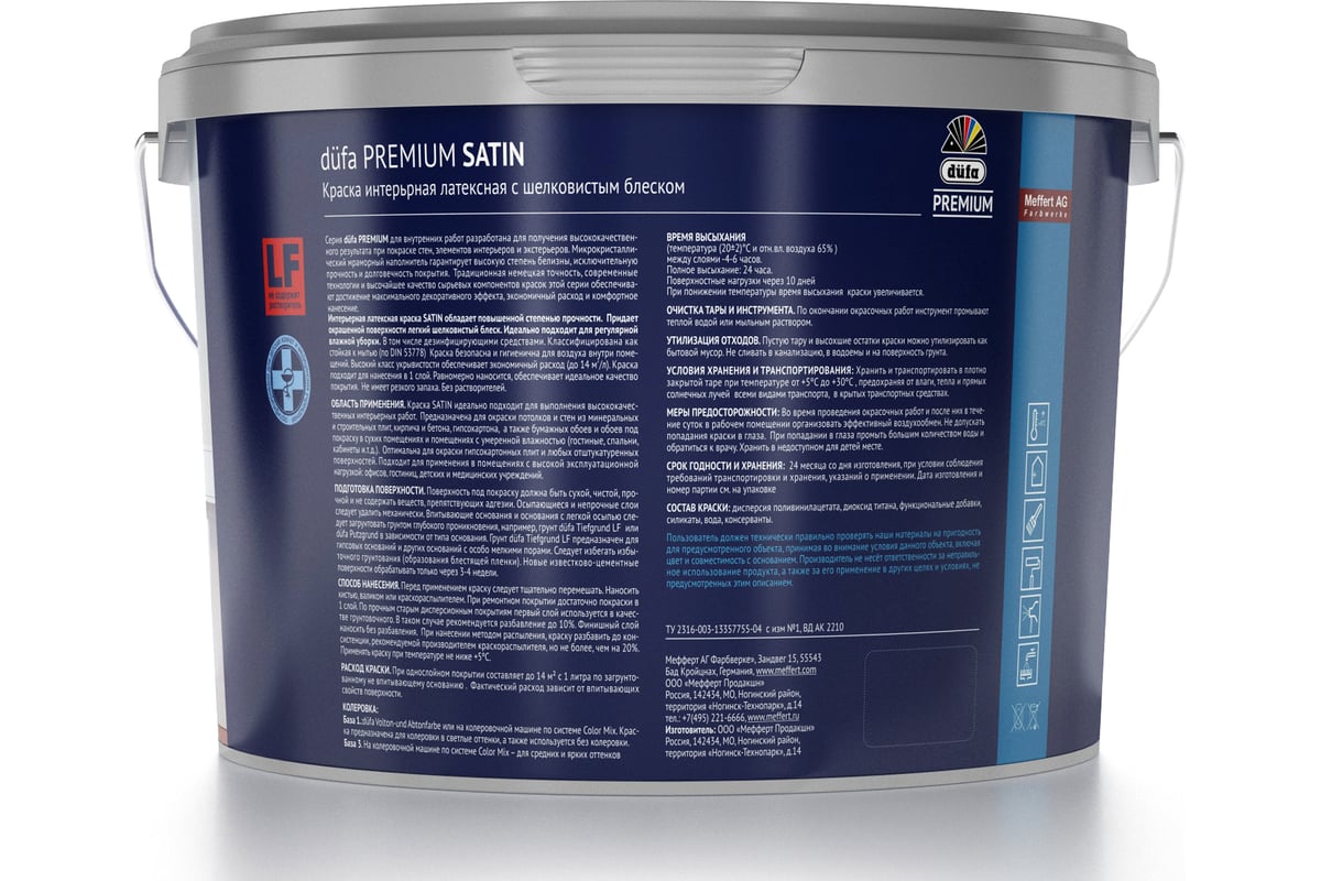 ВД краска Dufa Premium SATIN латексная интерьерная с шелковистым блеском база 3 9 л МП00-007450