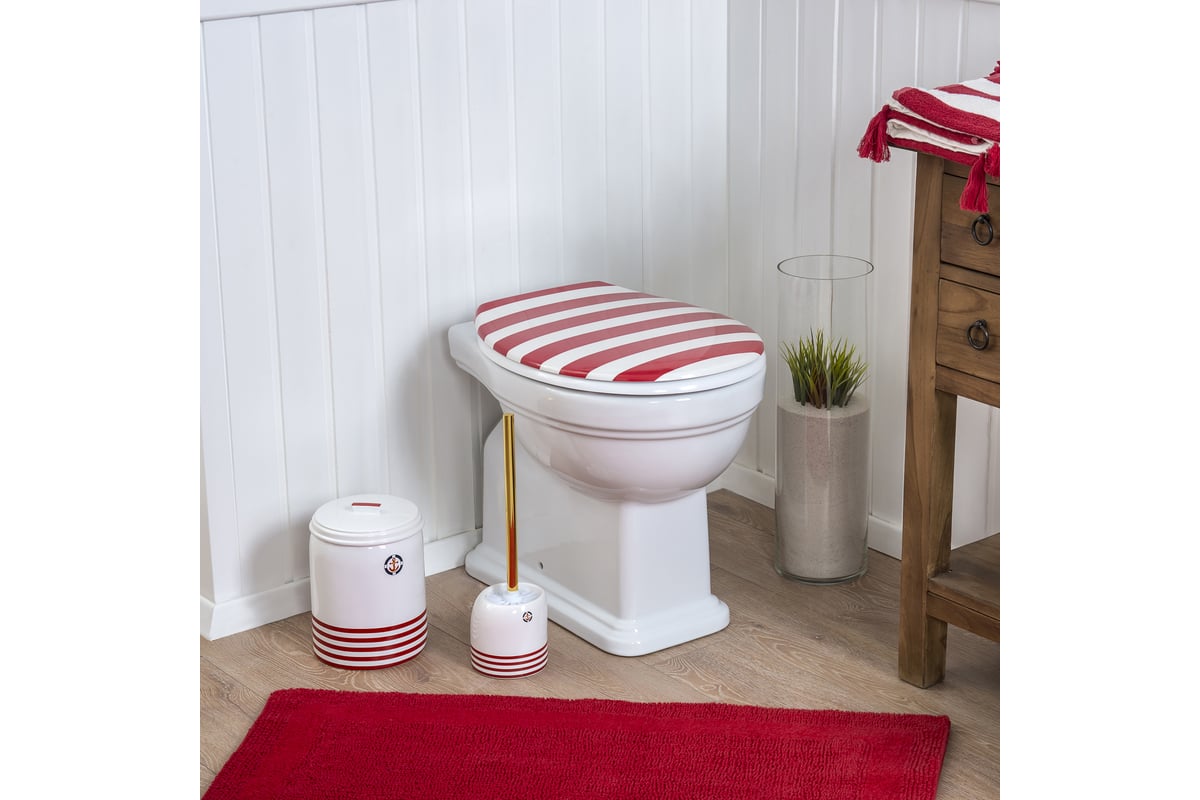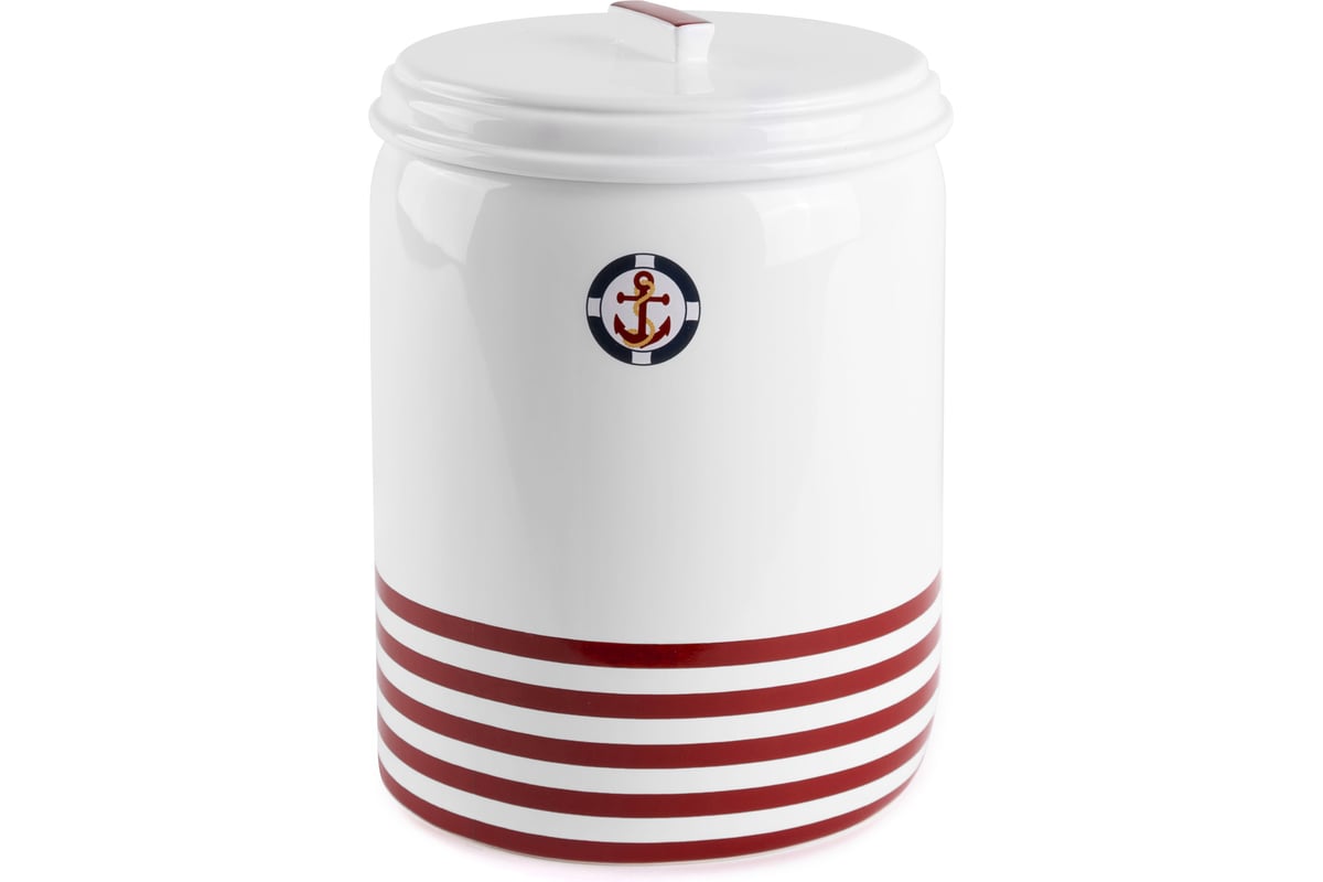 Ведро для мусора Moroshka Maritime red 2.8 л xx006-02 с декором из горизонтальных полос и изображением якоря хорошо впишется в интерьер с морской тематикой.