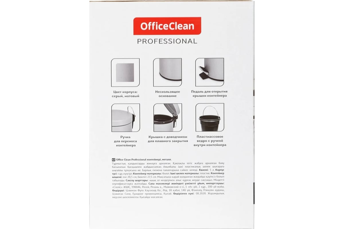 Ведро-контейнер для мусора OfficeClean Professional 5 л, серое 305613 используется для хранения и сбора отходов.