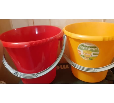 На мой взгляд это лучшие веда, очень удобные широкие ручки. В мороз правда в них ничего не таскал, не скажу. В них собираю ягоды грибы, и овощи из теплицы. Взял новое ведро, для сравнения, но почему то цвета такого как старое не было и наклейки нет. оранжевое старое которому 2 года.