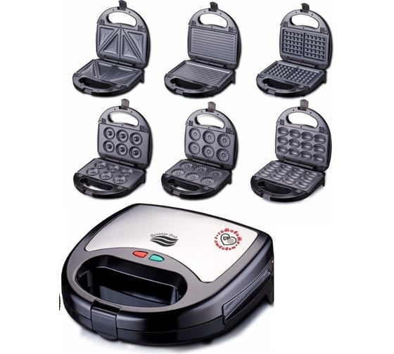 Вафельница ВЕЛИКИЕ РЕКИ Кубань-10 черная, 6 в 1, съемные панели, 800 Вт, трафарет для сахарной пудры в подарок Великие Реки 00-00044297