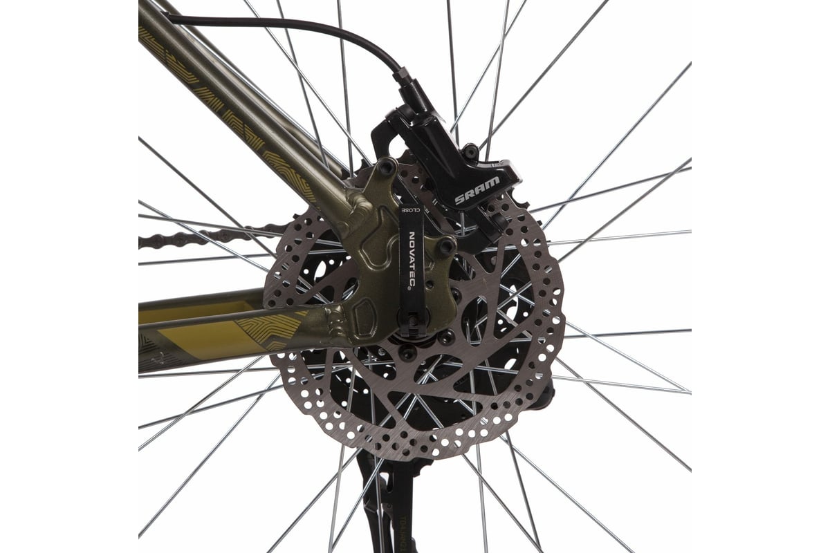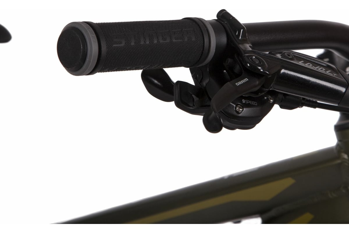 В арсенале этого велосипеда трансмиссия SRAM X5 с 9-ти скоростной кассетой и одной звездой Narrow Wide спереди на кованой алюминиевой системе Prowheel CY10 NW.