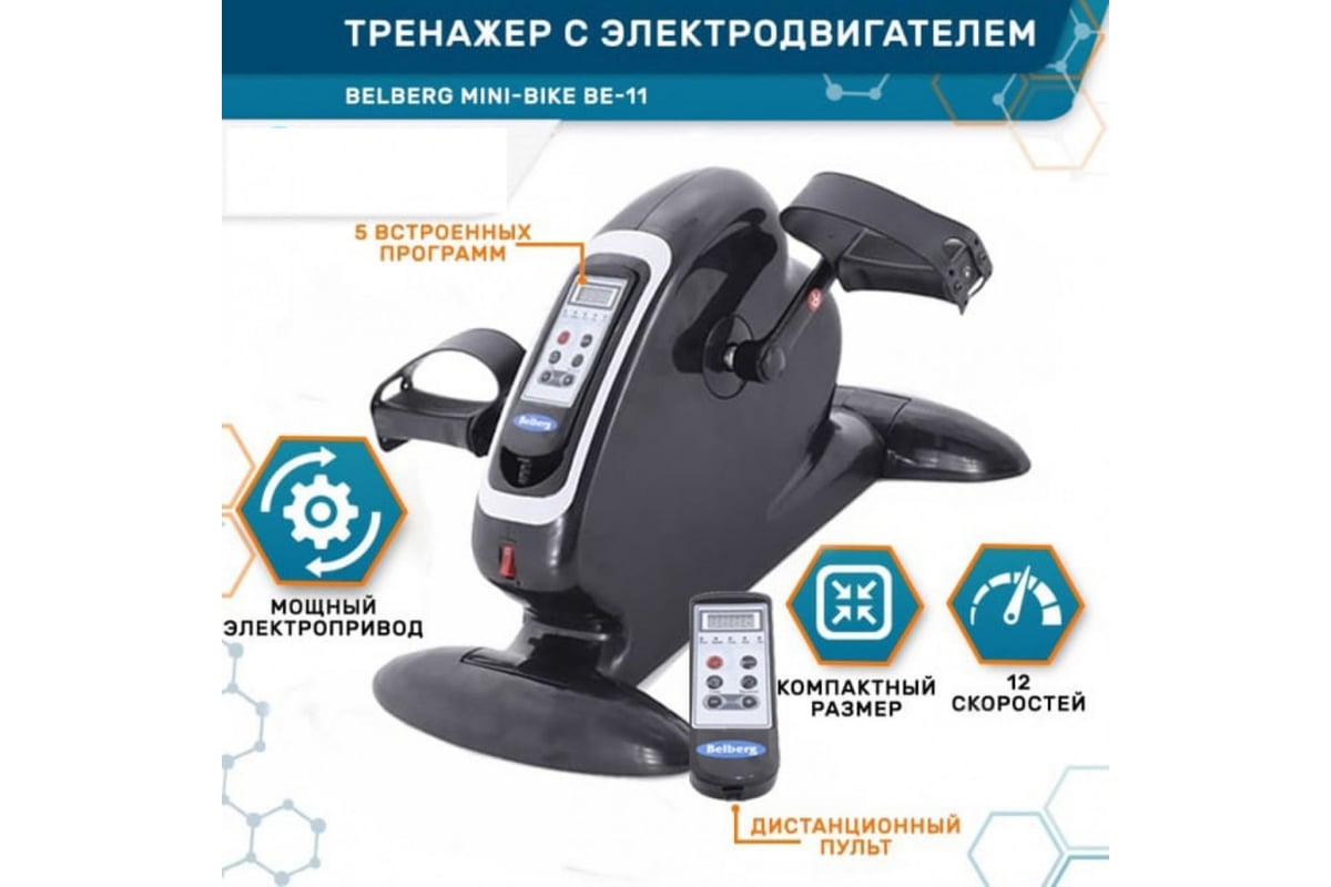 Велотренажер педальный с электроприводом Belberg MINI-BIKE BE-11 BLACK