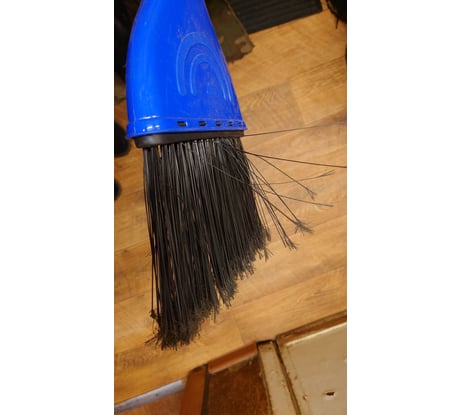 Щетина начинает топорщиться вверх и в стороны и с каждым разом больше и больше. Это затрудняет сбор мусора на совок. Гремит, когда подметаешь!