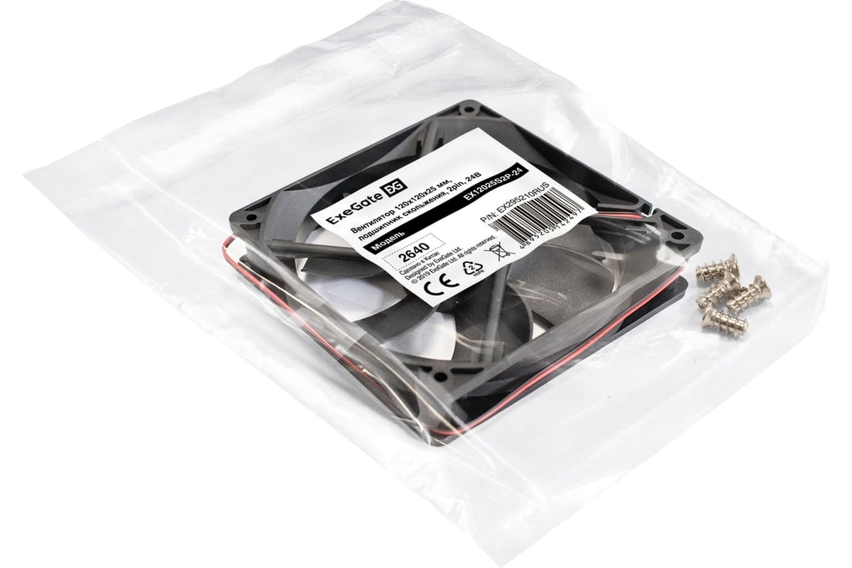 Вентилятор ExeGate 24В DC EX12025S2P-24 120x120x25 мм, Sleeve bearing подшипник скольжения, 2pin, 2100RPM, 34.2dBA 295210