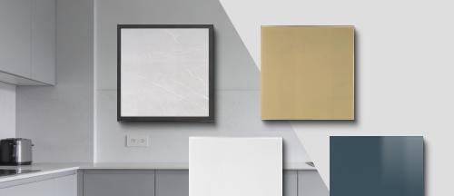 Выбор цветов стильных декоративных накладных панелей из стекла, пластика и металла (приобретаются отдельно) позволяет интегрировать AEON в любой интерьер и обновлять панели при желании, выбирая из разнообразия вариантов.