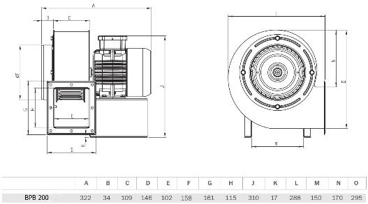 Вентилятор радиальный ВИЕНТО ВРВ-21, правая (Ф200), 380 вольт, ПЫЛЕВОЙ ВРВ-21(380В)-П-ПЫЛЬ
