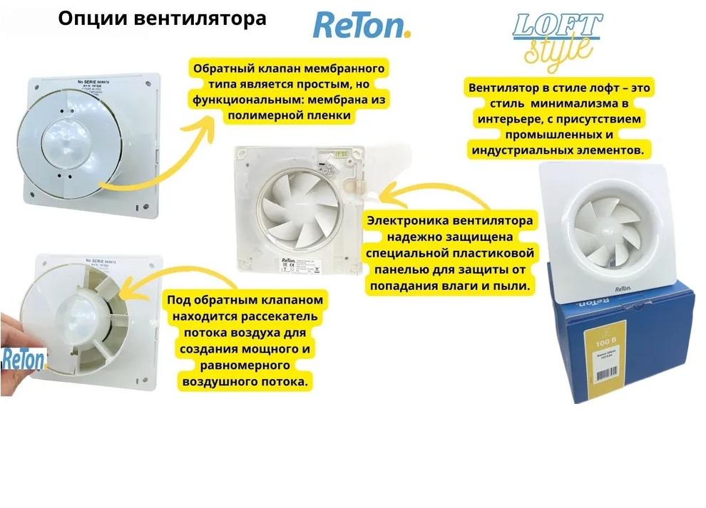Вытяжной малошумный шведский вентилятор Reton Silent100B для ванной комнаты – это сочетание ЛОФТ дизайна и высокого качества.
