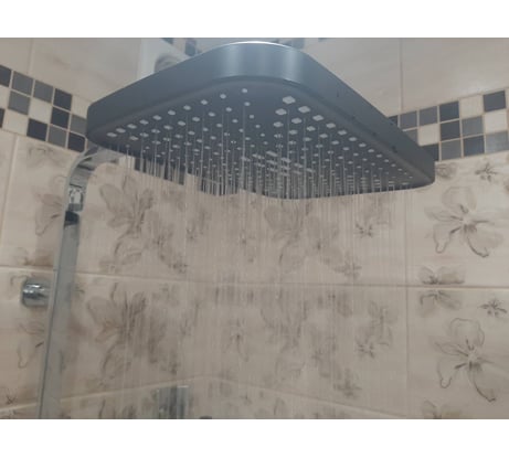 Верхний душ с регулировкой угла наклона 300х210 мм создаёт эффект тропического дождя, что дарит непередаваемые эмоции во время ежедневных банных процедур. Форсунки верхнего душа с функцией легкого очищения от известкового налета. Цвет матовый черный.
