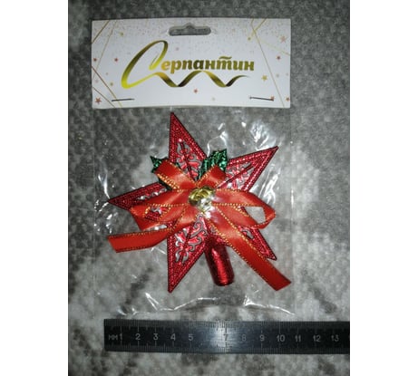 Верхушка на елку Серпантин Сияющая звезда 10 см, красный 201-3500
